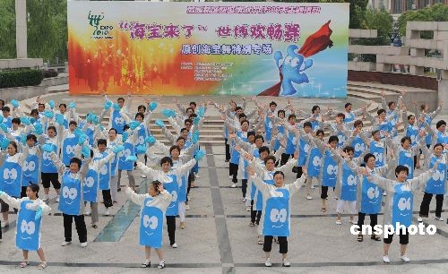 7月4日,上海市嘉定区的群众穿着上海世博会吉祥物海宝欢庆。当日是中国2010上海世博会进入300天倒计时。为迎接世博,响应世博“城市,让生活更美好”这一主题,上海市在这天举行了一系列丰富多彩的庆祝活动。