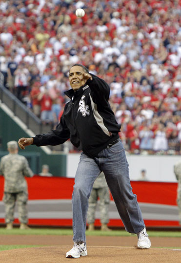 图:奥巴马为美国职业棒球全明星赛开球(2)