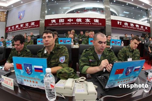 中俄联合反恐军事演习举行第一次联席会议(5)