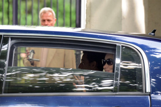 2009年7月27日,在慢跑时出现不适后被紧急送院的法国总统萨科齐在妻子布吕尼的陪同下出院。