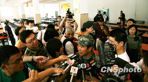 图为三师师长冷杰松大校被中外记者“围堵”。中新社发 张子扬 摄