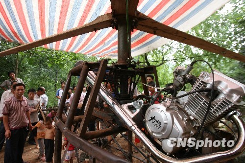8月1日,是河南嵩县旧县镇20岁农民吴中元自制的直升机试飞的日子,附近十里八乡的村民扶老携幼前来看稀奇。该飞机是吴中元花费两个月时间和一万多元人民币自己动手制作的,这个由角铁、圆钢、螺纹钢等构架的的框架装载了150毫升的摩托车用发动机,半径1.8米的螺旋桨则是用当地榆木切削的,机身总高2.5米。出于安全方面的考虑,该飞机没有完成当日的试飞任务。