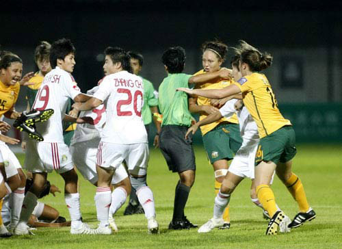 中澳女足赛后发生冲突 中国守门员受伤