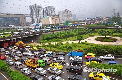 图为成渝高速公路位于重庆主城二郎收费站外排满因高速路封路而滞留的车辆。中新社发 曹多然 摄