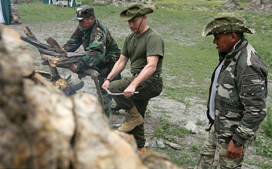 图:俄总理普京度假 准备篝火