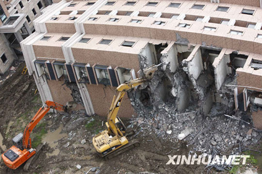 组图:上海倒覆楼房开始拆除(2)