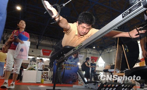 8月7日,2009中国国际健身大会在北京中国国际展览中心开幕,国内数千名健美青年和爱好者前往参观。中新社发 邹宪 摄
