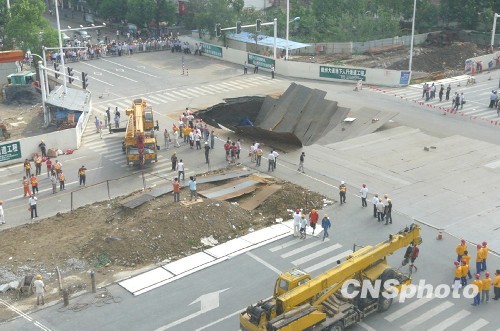 道路塌陷事故 救援工作正在进行(组图)