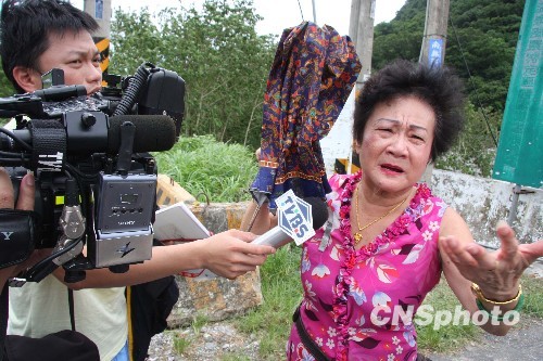 图为重灾区之一的台东县,一名居屋被洪水冲走的妇女接受采访,已是欲哭无泪。中新社发 董会峰 摄