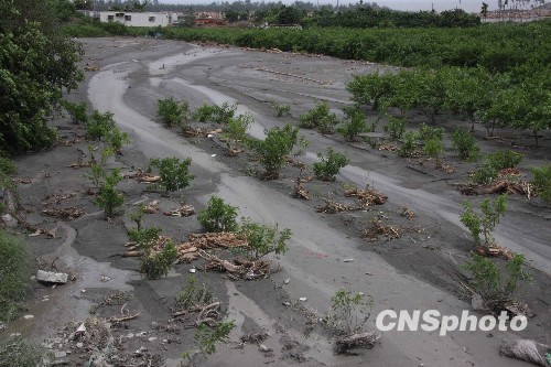 图为重灾区之一的台东县,大片被洪水侵袭过的果园。中新社发 董会峰 摄