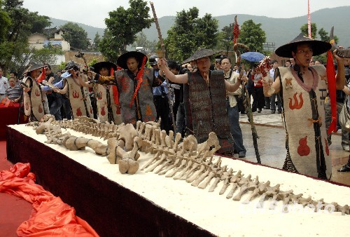 8月13日上午,“恐龙之乡”云南省楚雄彝族自治州禄丰县将三具珍贵恐龙化石赠送给中国科技馆新馆永久展出。