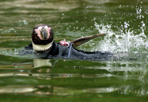 动物园企鹅穿上“泳衣” 避免阳光灼伤