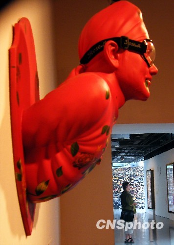 《印度现在——上海当代艺术馆印度当代艺术展》上展出作品。中新社发 绍常 摄