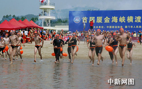 8月15日,厦门市环岛路椰风寨与小金门双口村之间海域举行了期盼多年的首届厦金海峡横渡活动,两岸百名游泳好手一起参加了这突破性的海峡横渡。