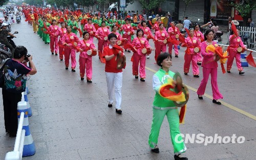 8月15日,浙江省台州市黄岩区举行千人排舞万人健身走活动。