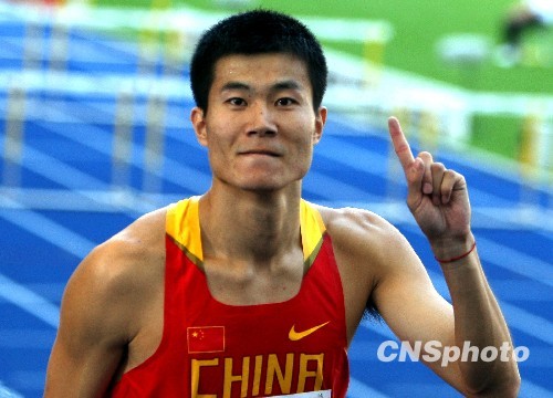 当地时间8月19日中午,第12届国际田径联合会世界田径锦标赛男子110米栏预赛在柏林奥林匹克体育场分6个小组开赛,没有刘翔的中国队3人出战,史冬鹏名列小组第一晋级半决赛。中新社发 任晨鸣 摄