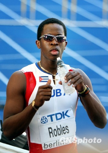 当地时间8月19日中午,第12届国际田径联合会世界田径锦标赛男子110米栏预赛第一轮在柏林奥林匹克体育场分六个小组开赛,世界纪录保持者、北京奥运会冠军、古巴名将罗伯斯在第二小组出战。可能因为没有了强劲竞争对手,罗伯斯过分放松最后仅以小组第三惊险晋级半决赛。图为赛后,罗伯斯看着电视画面回放有点儿发呆。中新社发 任晨鸣 摄
