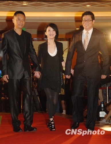 华谊举行"阅星式" 王中军、周迅、张涵予手拉手