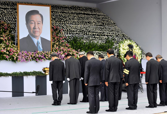 图:朝鲜吊唁团在金大中灵堂进行吊唁(2)