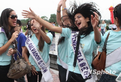 图为国际旅游小姐各国佳丽兴高采烈参加新乡巡游活动。中新社发 钱兴强 摄