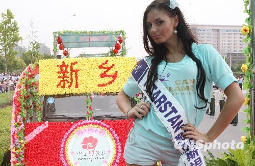 图为各国佳丽乘花车巡游展示风采。中新社发 钱兴强 摄