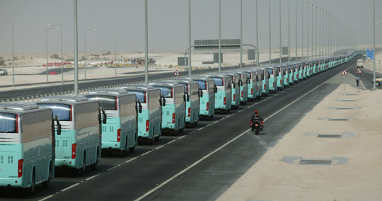 8月21日,325辆公交车在卡塔尔多哈的一条公路上列队行驶,打破了今年1月德国119辆公交车创下的吉尼斯世界纪录。325辆公交车总长5公里,以每小时20公里的速度行驶。