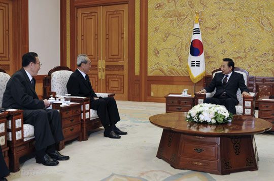 图:韩国总统李明博会见朝鲜吊唁团 (2)