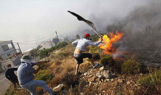 23日,希腊首都雅典郊区,当地居民在扑救丛林大火。
