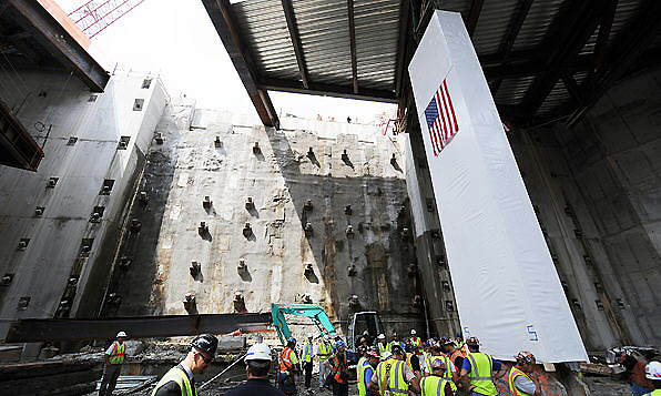 组图:“9·11”纪念钢柱重返世贸原址