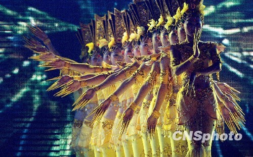 图为晚会上精彩的“千手观音”表演吸引各国参赛佳丽。中新社发 钱兴强 摄