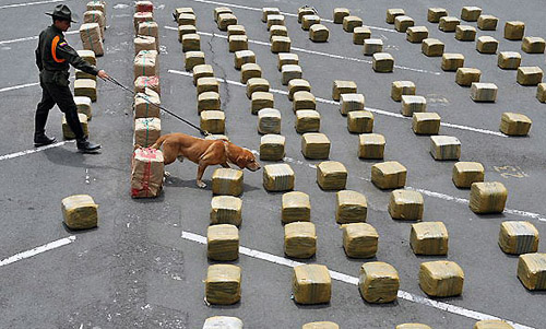 图:哥伦比亚警方缴获近3吨大麻