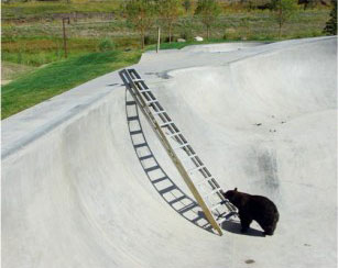 在美国著名度假胜地科罗拉多州的斯诺马斯镇,一只狗熊出来觅食时掉进了巨大的滑板池里。当滑板池的管理人员发现被困狗熊后,立即找来了一把梯子并把它竖在了狗熊的面前,狗熊心领神会地顺着梯子爬了出来。据现场管理人员讲,平日里显得行动笨拙的狗熊爬起梯子来居然“身形很灵巧”,狗熊爬上地面后又悠然自得地逛到别处去了。