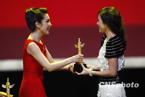 图为李冰冰为章子怡颁奖。中新社发 李学仕 摄