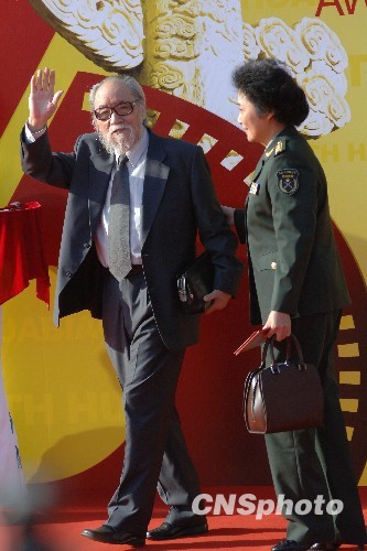 图:华表奖颁奖礼闭幕 葛老爷子向媒体挥手