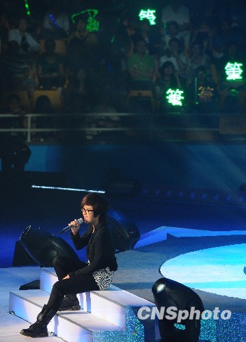 图为周笔畅在演唱会上献歌。中新社发 侯宇 摄