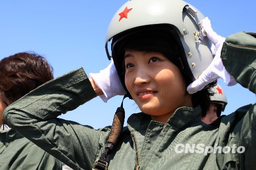 中国空军首批歼击机女飞行员更换新型飞行装具。中新社发 张雷 摄