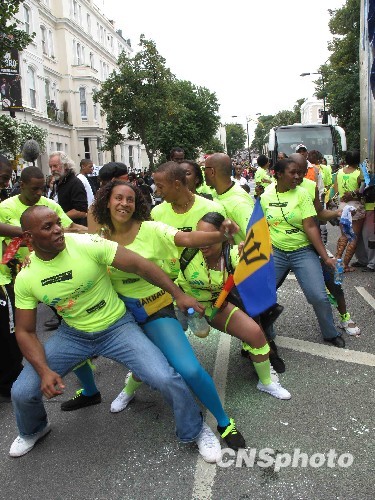 四十支表演团队在3点5英里长的街道上进行化妆巡游表演,身着夸张服装的表演者,展示各种风格的音乐及舞蹈。中新社发 魏群 摄