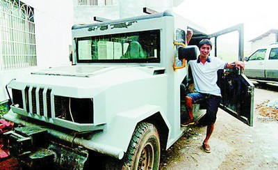 一说到“悍马”,人们马上会想到那拥有“越野之王”美誉的庞然大物,可浏阳(河南)文家市镇文华村28岁的花炮机械设计师杨伦伟,着迷于“悍马”的彪悍外形,突发奇想,与徒弟一起造出了一辆“山寨悍马”,惹得周围邻居连连称奇。