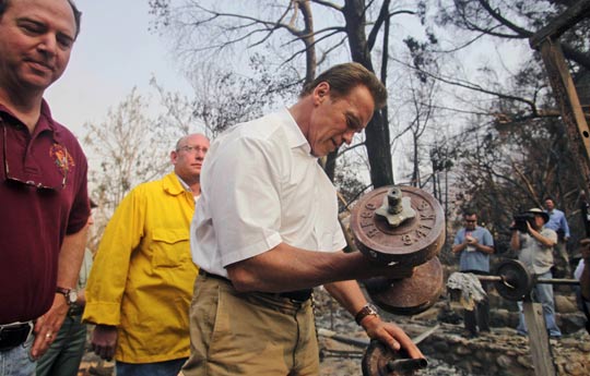 施瓦辛格视察山火灾区 废墟中"玩"哑铃(2)