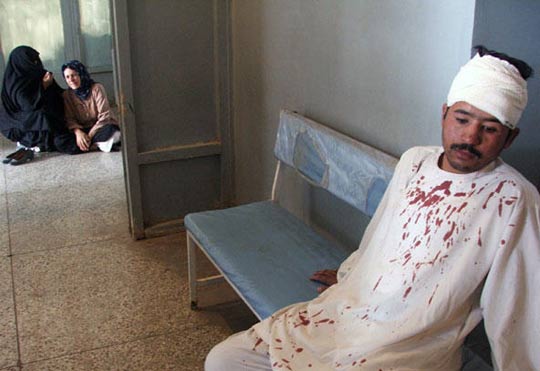 一名在炸弹袭击事件中受伤的男子在医院内休息。