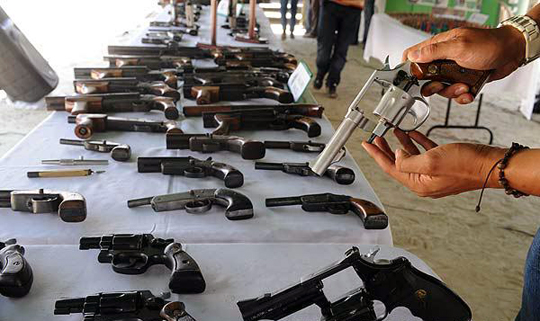 9月7日,在哥伦比亚的麦德林,警方展示了在多次行动中缴获的非法武器,其中包括数支AK-47步枪。