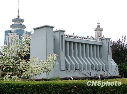 三峡大坝立体花坛。中新社发 玉龙 摄