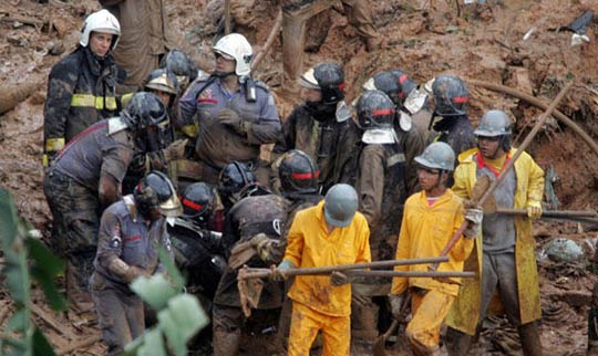 9月9日,巴西圣保罗遭风暴袭击,3名儿童在风暴引发的泥石流中丧生。图为救援人员在现场搜救。