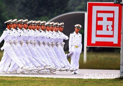 图为海军学员方队正在紧张训练。中新社发 宋吉河 摄