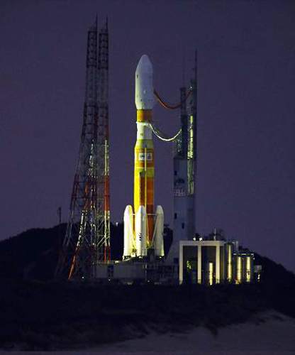 图为日本首架无人太空补给机空间站转运飞船(HTV)的H-2B型火箭。
