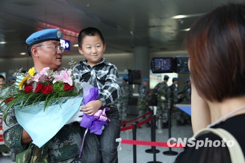 9月10日,中国第二批赴苏丹达尔富尔维和工程兵大队第一梯队220名官兵完成维和任务,乘专机抵达济南遥墙国际机场。