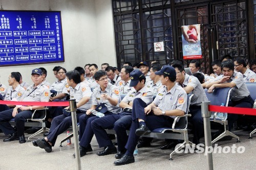 图为法院内平日供办事民众小坐的地方坐满了警察。中新社发 黄少华 摄