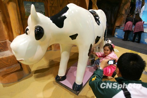 9月16日,位于奥林匹克公园中心区的中国科技馆新馆举行开馆典礼。据介绍,新馆展览面积约4万平方米,包括“科学乐园”、“华夏之光”、“探索与发现”、“科技与生活”和“挑战与未来”五大常设主题展厅和公共空间展示区。图为一名小朋友在儿童体验区内体验挤奶的乐趣。中新社发 富田 摄