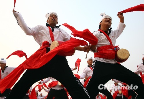 国庆群众游行安塞腰鼓方阵首次在北京合练(2)