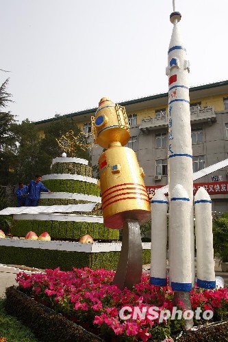 北京外国语大学布置“神州飞天”花坛迎国庆(2)